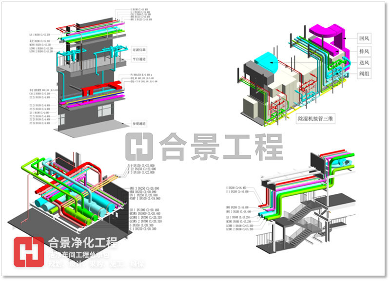 BIM 技術(shù)可應(yīng)用于工程項(xiàng)目規(guī)劃、設(shè)計(jì)、施工、改建、運(yùn)維等范圍,為產(chǎn)業(yè)鏈貫通、工業(yè)化建造和建筑創(chuàng)作提供技術(shù)保障。合景智慧建設(shè)(廣東)有限公司在潔凈廠房工程建設(shè)中,以BIM技術(shù)為全周期模擬,對(duì)工程全局,即潔凈環(huán)境、人流物流、暖通、電氣工程、整廠能耗、質(zhì)量、安全等方面提供方案優(yōu)化和科學(xué)決策提供依據(jù),與各專業(yè)協(xié)同工作、項(xiàng)目的虛擬建造和精細(xì)化管理,為工業(yè)潔凈室建設(shè)提質(zhì)增效、節(jié)能環(huán)保創(chuàng)造條件,虛實(shí)結(jié)合,賦能項(xiàng)目,打造交鑰匙項(xiàng)目。