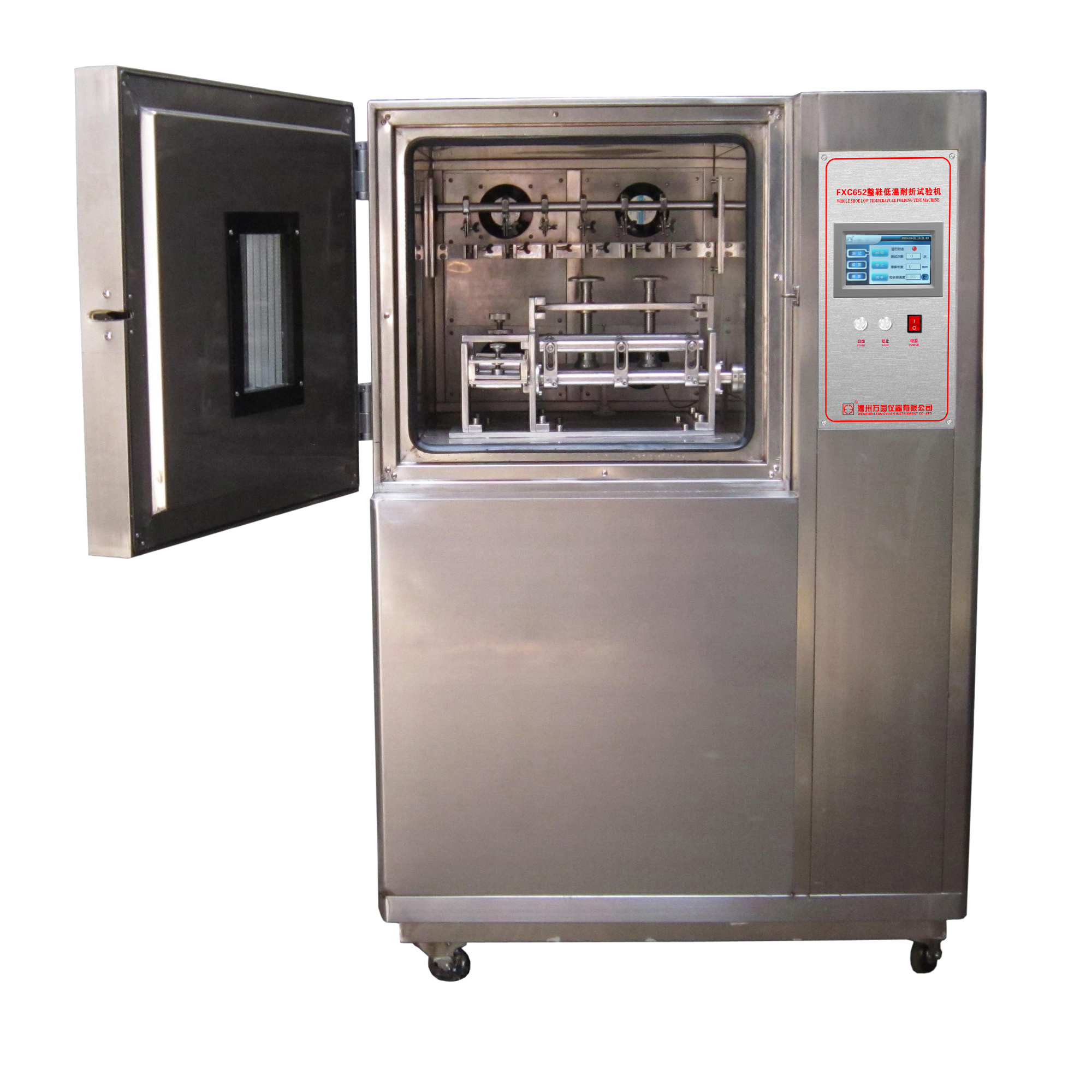 FXC650整鞋低溫耐折試驗(yàn)機(jī) HG/T 3084-2010《注塑鞋》、HG/T 2411-2006《鞋底材料90°屈撓試驗(yàn)方法》、QB/T 2714-2005《皮革 物理和機(jī)械試驗(yàn) 耐折牢度的測(cè)定》。