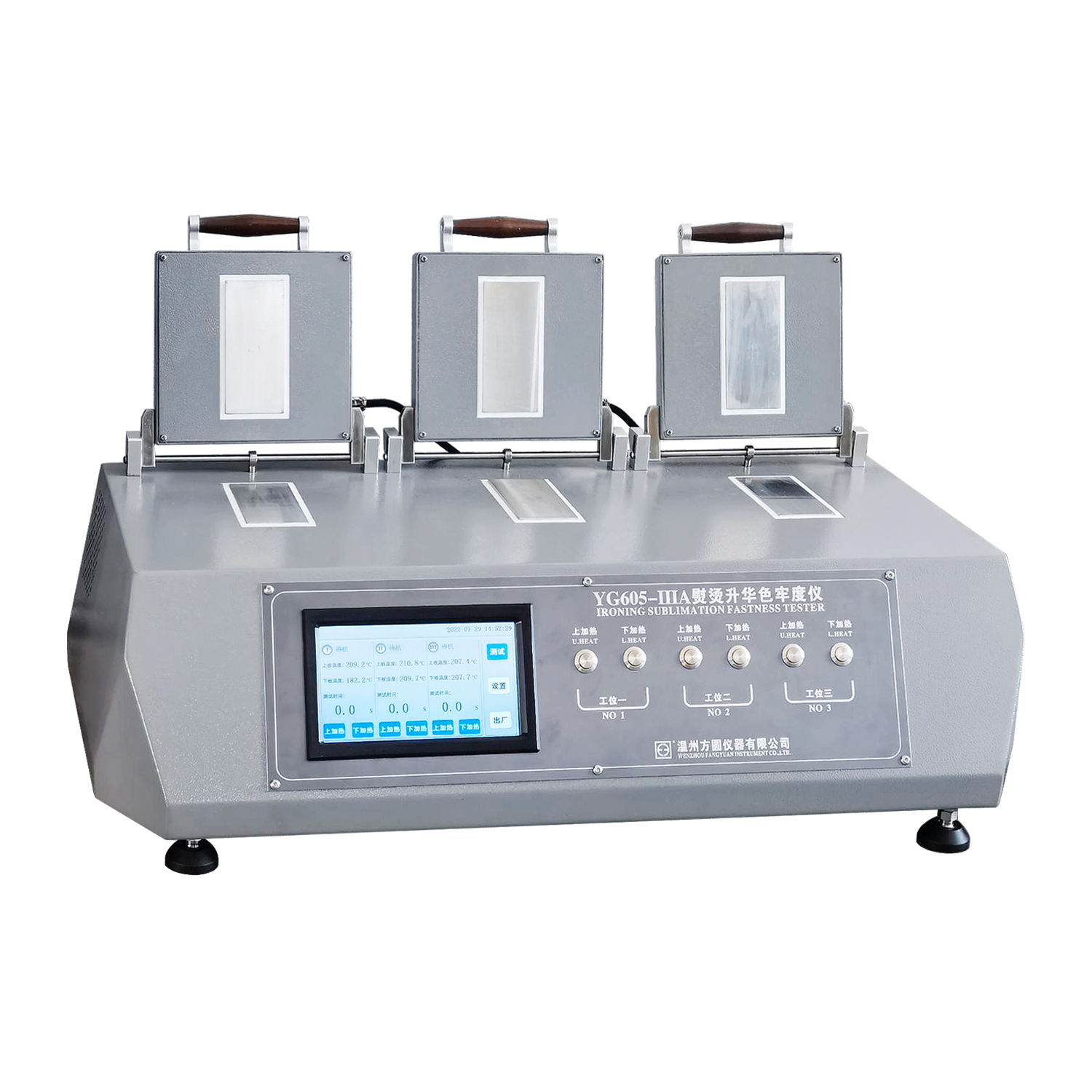 47 YG605-ⅢA熨燙升華色牢度儀 GB/T5718、GB/T6152、FZ/T01077、ISO105-P01、ISO105-X11等標(biāo)準(zhǔn)。